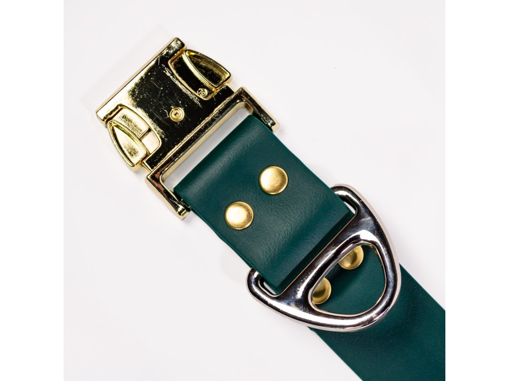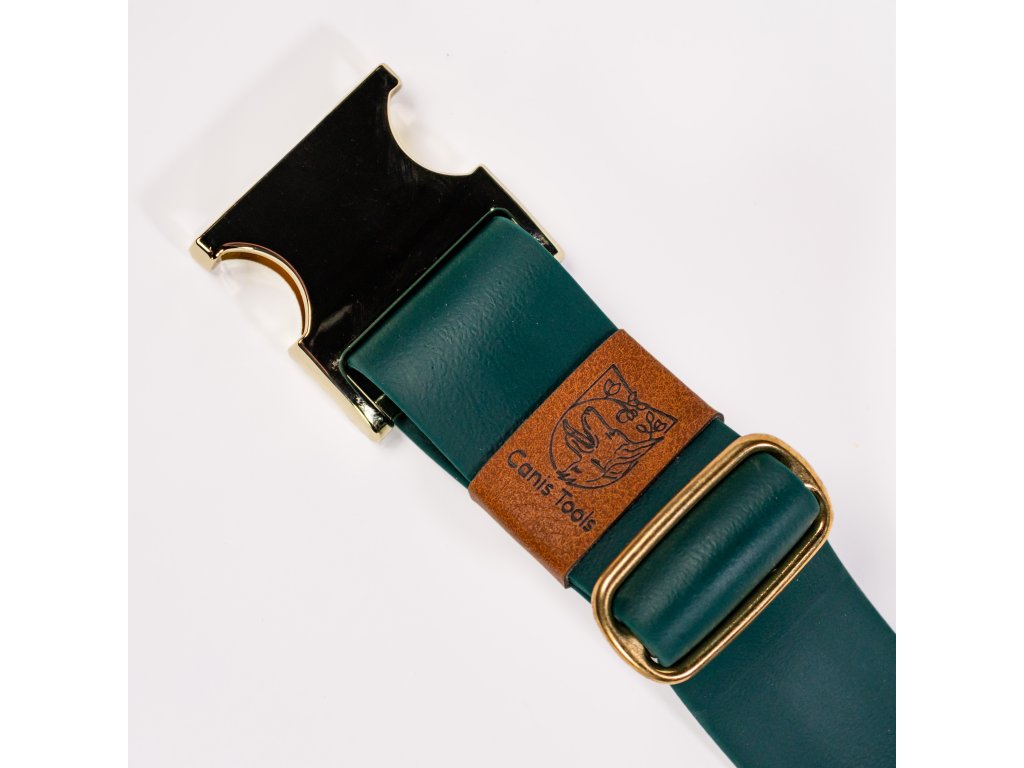 Zelený široký obojek je ideální volbou pro každého, kdo hledá kombinaci elegance, odolnosti, pohodlí a české ruční výroby.